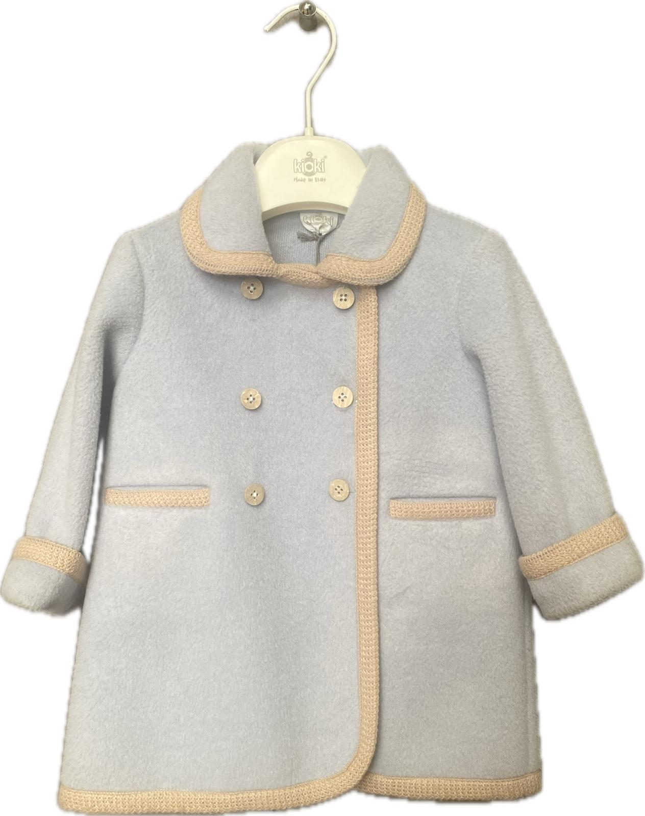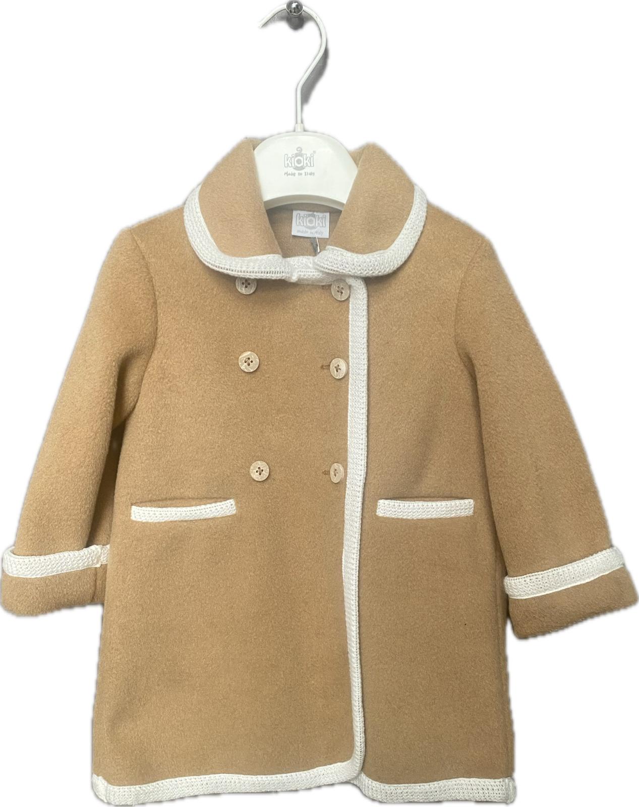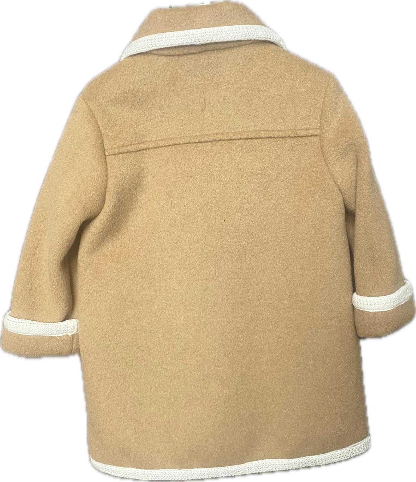 Cappotto bimbo abbottonatura doppio petto modello lana cotta con inserti bottoni e passamaneria a contrasto