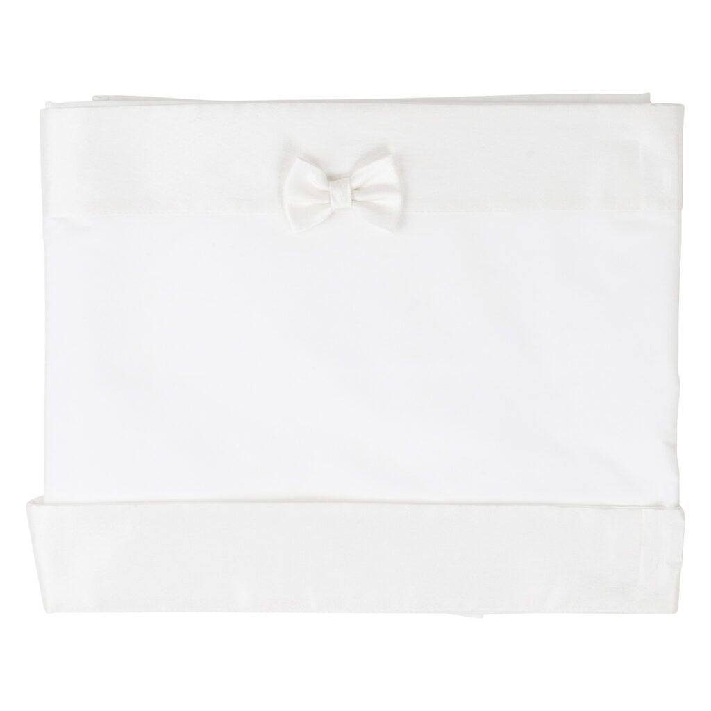 Lenzuolino culla in mussola di cotone bordatura e fiocco di finissimo raso 100% cotone 80 x 115